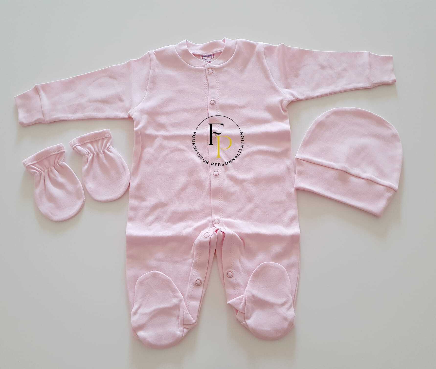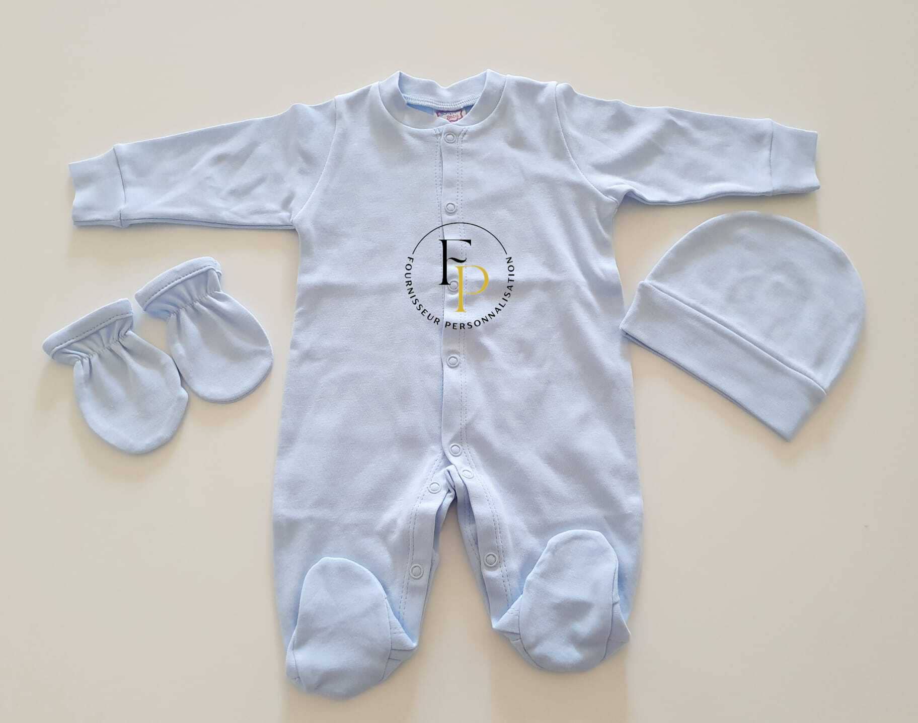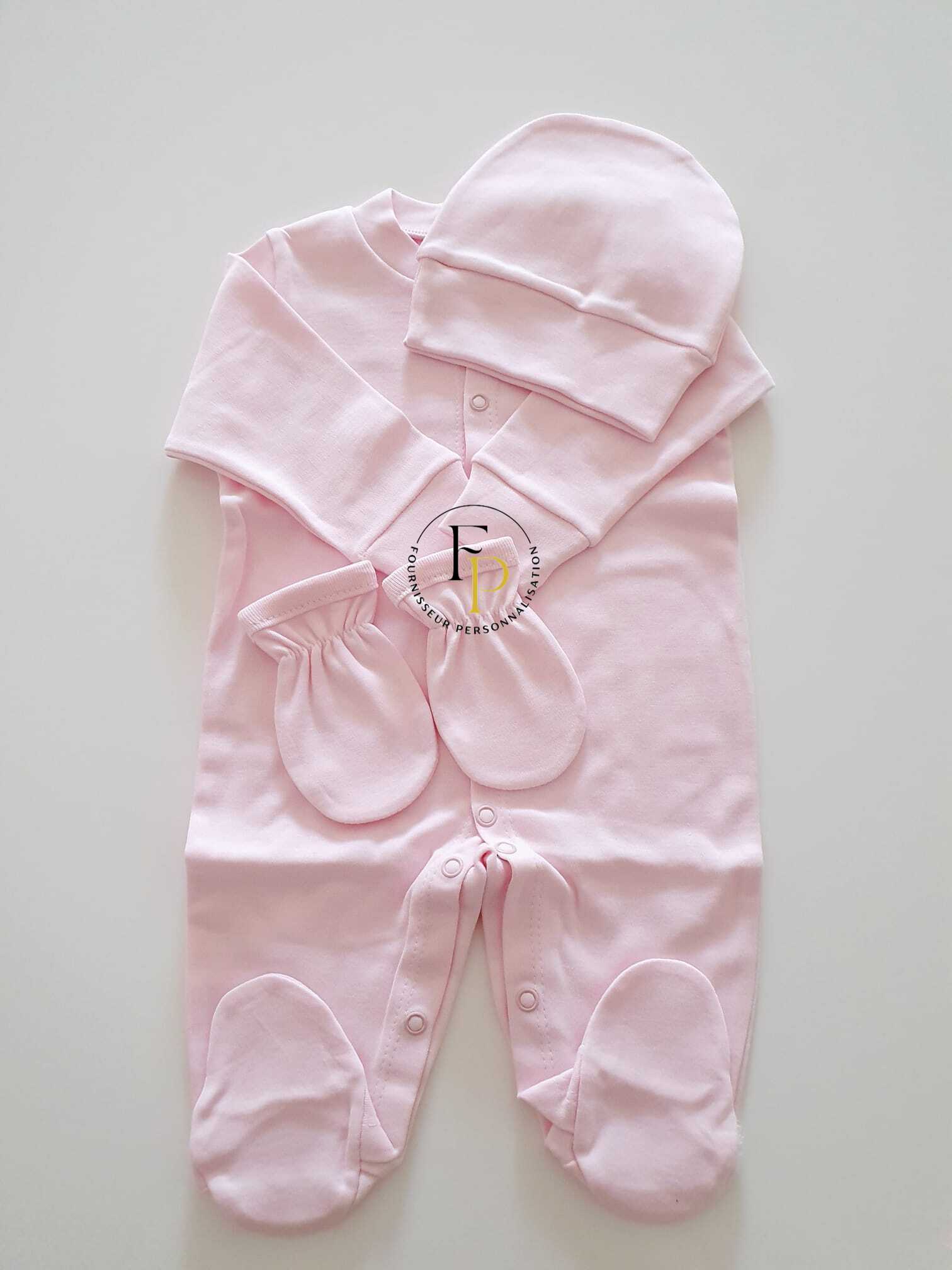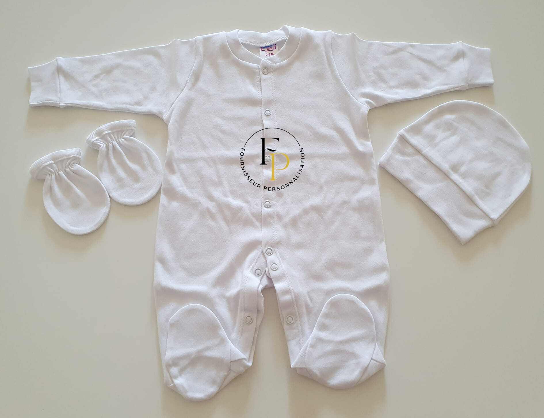 Contient : une grenouillère, un bonnet et une paire de moufles.